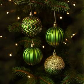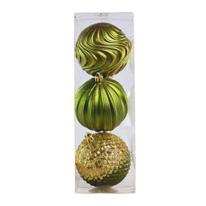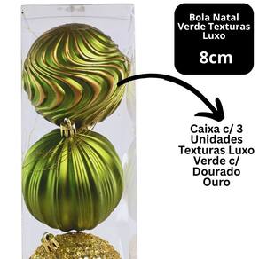 Encante sua decoração natalina com este kit luxo com 3 bolas decorativas em tons de verde com dourado ouro, que combinam sofisticação e brilho em cada detalhe. O conjunto traz três modelos com texturas diferentes, com acabamentos que mesclam:
