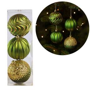 Kit com 3 Bolas de Natal Luxo Verde com Dourado | 8cm | Texturas Exclusivas com Glitter e Lantejoulas