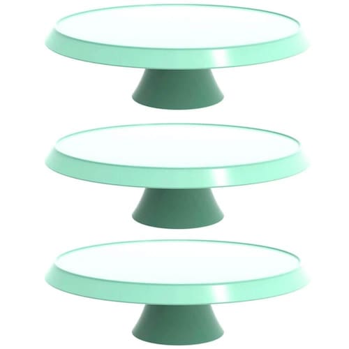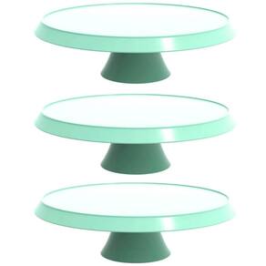 Kit 3 Boleiras com Pedestal Verde Menta Pratos para Bolos 28cm Balcões de Confeitarias Eventos.