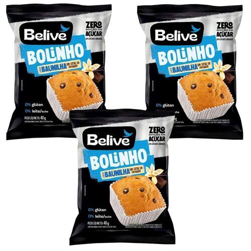 Kit 3 Bolinho Baunilha C Gotas De Chocolate Zero 40G Belive