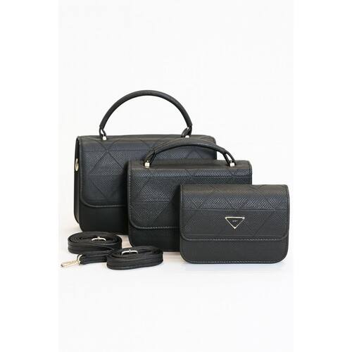 Cada conjunto vem com 3 bolsas no mesmo tom, em tamanhos diferentes g, m e p , com alças removíveis que permitem o uso como tiracolo ou bolsa de mão. O design moderno e acabamento texturizado trazem sofisticação para qualquer ocasião.