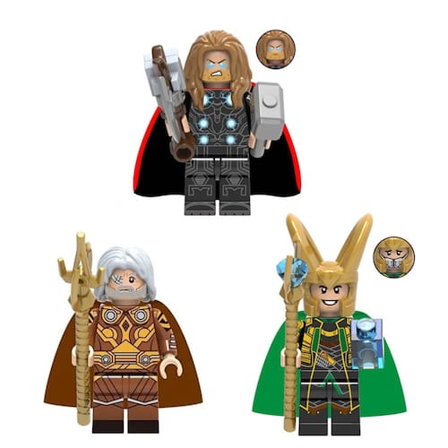 Kit Blocos de Montar – Thor, Odin e Loki! Miniaturas articuladas de aproximadamente 4cm de altura, feitas em PVC resistente e com acabamento detalhado. Cada personagem acompanha base para exposição, tornando o kit ideal para brincar, colecionar ou decorar. Perfeito para fãs da Marvel que desejam recriar as aventuras de Asgard com seus heróis e vilões favoritos!O Kit inclui 3 personagens Altura aproximada: 4cmExcelente qualidade e acabamentoMaterial: Plástico Embalagem: Plástico OPP lacrados individualmente de fábricaFaixa etária: +6 anos (contém pequenas peças) Marca: Não Informado