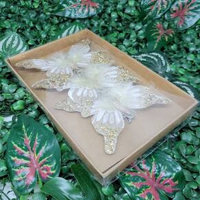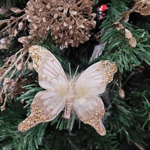 Com dimensões de 12cm x 8cm, cada borboleta é ricamente adornada com glitter, capturando a luz de maneira deslumbrante e trazendo um brilho especial para sua árvore de Natal ou qualquer outro espaço decorativo.