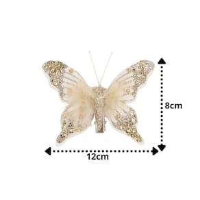 -03 unidades Borboleta Decorada Glitter Champanhe Plumas Luxo 12cm - Magizi