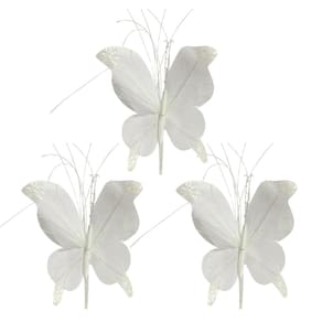 Kit 3 Borboletas Pick Natalina Decorada com Glitter Branca – 23cm x 15cm