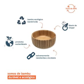 Esse conjunto contém: 3 unidades - BOWL CANELADO DE BAMBU MÉDIO - OIKOS Diâmetro: 19 cm Altura: 6 cm
