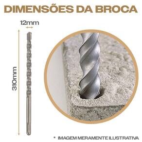 Kit com 3 Brocas SDS Plus 12mm x 310mm Metal Duro Widea para Furar Concreto com Martelete Eda Profissional - Marca: Eda Profissional - Jogo exclusivo com 3 brocas - Diâmetro: 12mm - Comprimento: 310mm - Encaixe: SDS Plus - Ponta de metal duro com tungstênio vídea - Corpo em aço carbono temperado - Ideal para perfuração em concreto, granito, azulejo, rocha, alvenaria, rochas e pisos - Compatível com martelos rotativos que possuam encaixe SDS plus - Dureza 49 a 51 HRc que proporciona mais resistência em menos desgaste em sua haste helicoidal - Garantia: 90 dias contra defeitos de fabricação Imagem meramente ilustrativa: não representa as dimensões exatas da broca