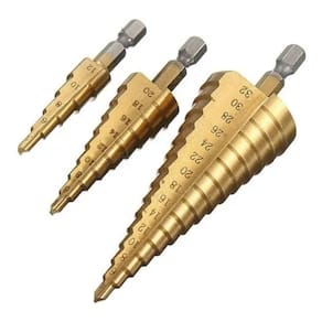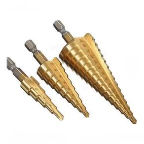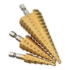 Kit 3 brocas HSS Espiral / cônica/ escalonada de passo Drill Bit 4-12 / 4-20 / 4-32