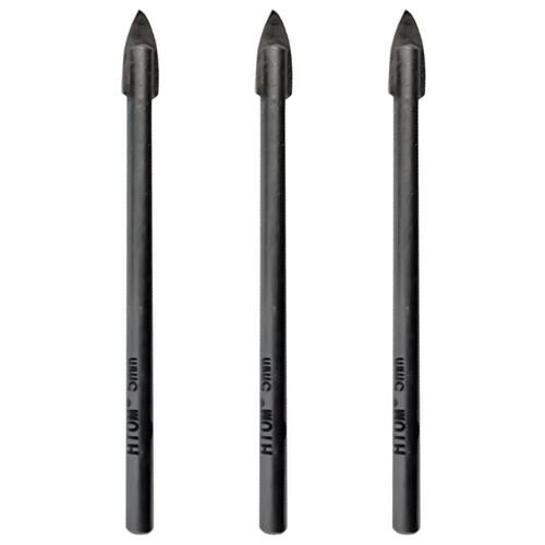 Kit com 3 Brocas para Furar Vidro 5mm Porcelanato Cerâmica Metal Duro HTOM