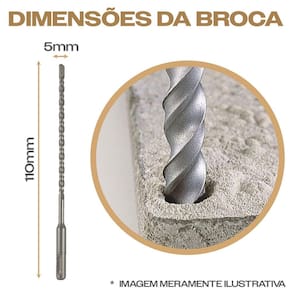 Kit 3 Brocas SDS Plus 5mm x 110mm Metal Duro Widea para Furar Concreto com Martelete Eda Profissional - Marca: Eda Profissional - Jogo exclusivo com 3 brocas - Diâmetro: 5mm - Comprimento: 110mm - Encaixe: SDS Plus - Ponta de metal duro com tungstênio vídea - Corpo em aço carbono temperado - Ideal para perfuração em concreto, granito, azulejo, rocha, alvenaria, rochas e pisos - Compatível com martelos rotativos que possuam encaixe SDS plus - Dureza 49 a 51 HRc que proporciona mais resistência em menos desgaste em sua haste helicoidal - : 90 dias contra defeitos de fabricação Imagem meramente ilustrativa: não representa as dimensões exatas da broca Marca: Não Informado