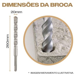 Kit com 3 Brocas SDS Plus 20mm x 260mm Metal Duro Widea para Furar Concreto com Martelete Eda Profissional - Marca: Eda Profissional - Jogo exclusivo com 3 brocas - Diâmetro: 20mm - Comprimento: 260mm - Encaixe: SDS Plus - Ponta de metal duro com tungstênio vídea - Corpo em aço carbono temperado - Ideal para perfuração em concreto, granito, azulejo, rocha, alvenaria, rochas e pisos - Compatível com martelos rotativos que possuam encaixe SDS plus - Dureza 49 a 51 HRc que proporciona mais resistência em menos desgaste em sua haste helicoidal - Garantia: 90 dias contra defeitos de fabricação Imagem meramente ilustrativa: não representa as dimensões exatas da broca