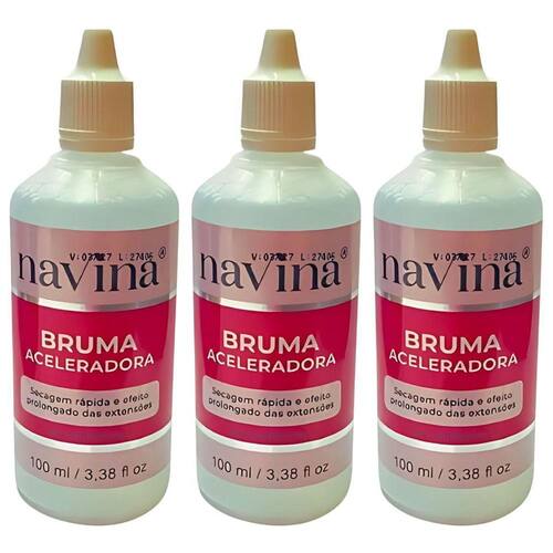 Contém: 3 unidades. Bruma Aceleradora De Cola para Extensão de Cílios Navina 100ml Fabricação: 02/2022 Validade: 36 meses. Modo de Utilizar: Execute normalmente o procedimento de extensão de cílios e finalize com a Bruma Aceleradora Navina direcionando o produto em nano particulas de umidade, projetadas pelo nanomister, à uma distância aproximada de 20cm sobre os olhos ainda fechados. Produto pronto para ser utilizado. Precauções: Não ingerir. Mantenha a embalagem bem fechada, em local seco e fresco, ao abrigo de luz solar direta e fora do alcance de crianças. Em caso de sensibilidade e/ou irritação suspenda a utilização imediatamente e procure orientação médica. Utilização Externa.