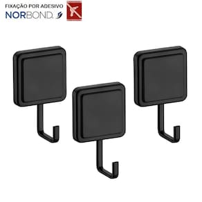 Kit 3 Cabide Gancho Multiuso Para Toalha Objetos Banheiro Adesivo Dupla Face Preto Fosco - Future