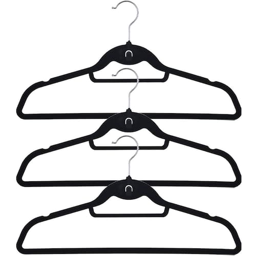 Kit 3 Cabides De Veludo Slim Preto Antideslizante Ultrafino