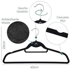 Cabide de Veludo Slim Preto 43cm Antideslizante Ultrafino para Roupas Delicadas Rayco