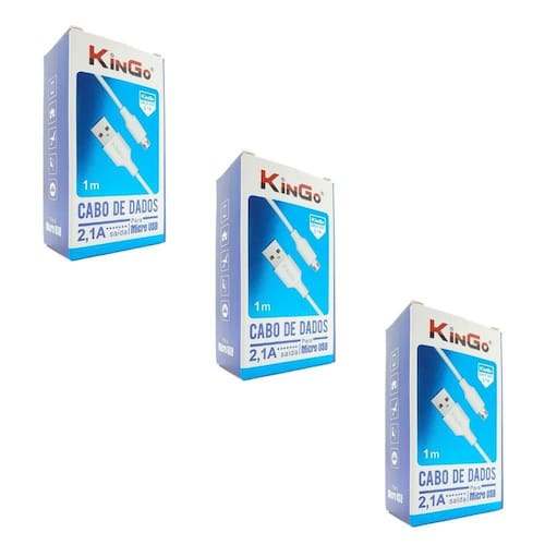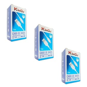 Kit 3 Cabos de Dados Carregadores Micro-Usb V8 Kingo 1 metro 2.1A - Branco