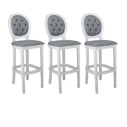Kit 3 Cadeira Alta de Balcão Banco Bistrô Medalhão Branco e Cinza