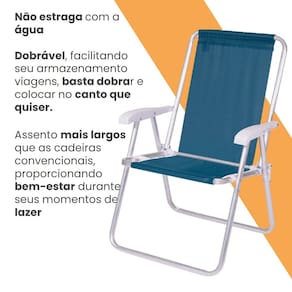 Não é a toa que ela traz conforto em seu nome! A Cadeira Alta Conforto possui encosto e assento mais largos que as cadeiras convencionais, proporcionando bem-estar durante seus momentos de lazer e descanso. Sua estrutura, inclusive dobradiças, é produzida pela Mor em alumínio de excelente qualidade e sua tela é feita em sannet liso, com proteção UV, anti-mofo e de fácil limpeza. Seus rebites são produzidos em aço! Seu encosto mais alto tem 85,5cm de altura e seus braços plásticos são feitos em formato anatômico. Apesar de seu tamanho, é fácil de carregar, devido à leveza do material. Suporta até 120 Kg. Dobrável, é muito fácil de colocar em qualquer cantinho. Descanse e relaxe em qualquer ambiente com a Cadeira Alta Conforto Sannet!