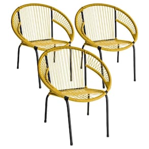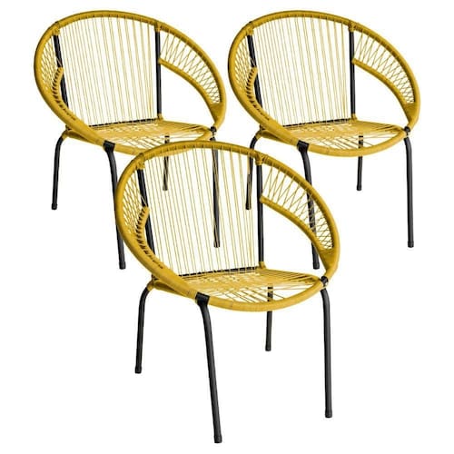 Kit 3 Cadeira De área Eclipse Tramado Fibra Sintética E Aço Amarelo