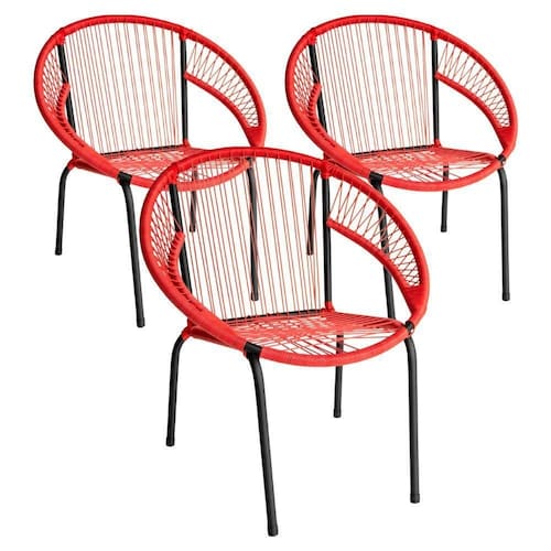 Kit 3 Cadeira De área Eclipse Tramado Fibra Sintética E Aço Vermelho