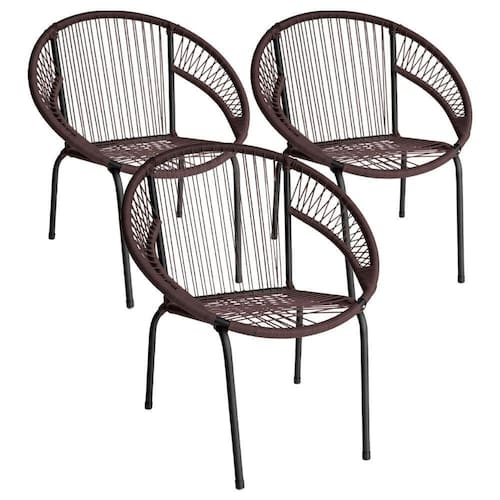 Kit 3 Cadeira De área Eclipse Tramado Fibra Sintética E Aço
