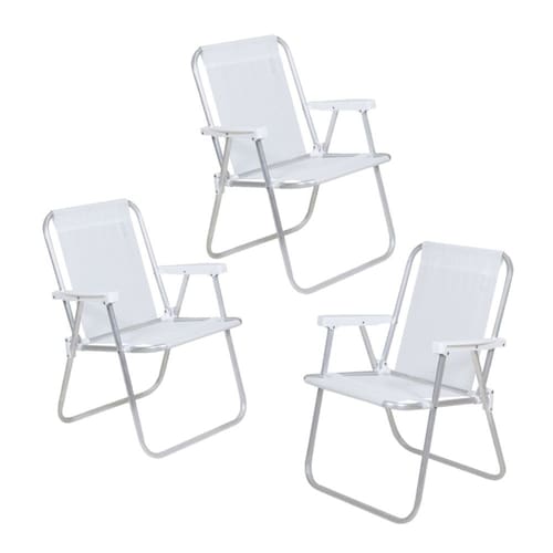 Kit 3 Cadeira de Praia Alta Alumínio Lazy Sannet - Belfix - Branco
