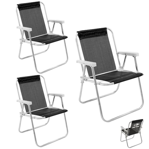 Kit 3 Cadeira de Praia Alta Alumínio Lazy Sannet Preta Mormaii 023567 Belfix