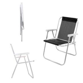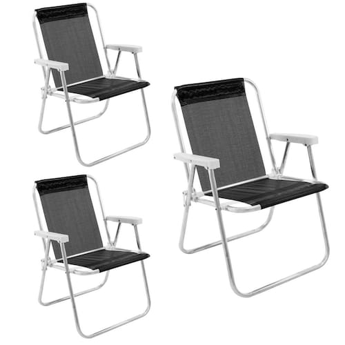 Kit 3 Cadeira de Praia Alta Alumínio Sannet Lazy Preta
