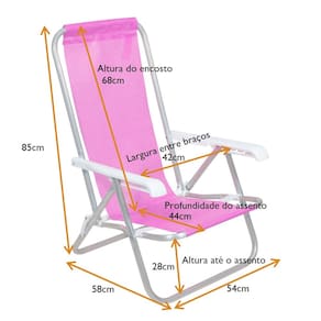 Medidas da cadeira aberta: (A x L x C) 85 cm x 54 cm x 58 cm