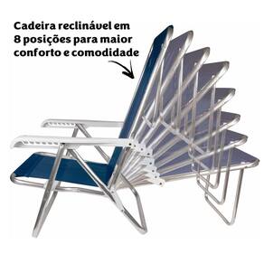 KIT 3 CADEIRA RECLINÁVEL 8 POSIÇÕES EM ALUMÍNIO