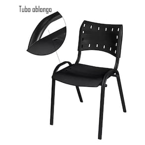 Kit 3 Cadeira ISO Tubo Oblongo Aço Industrial Empilhavel - Preto