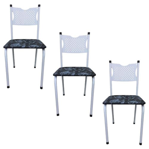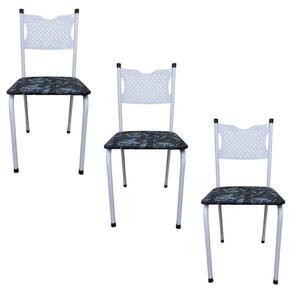 Kit 3 Cadeira para Cozinha MC Tubular Almofadada Estrutura Branca com Assento Floral