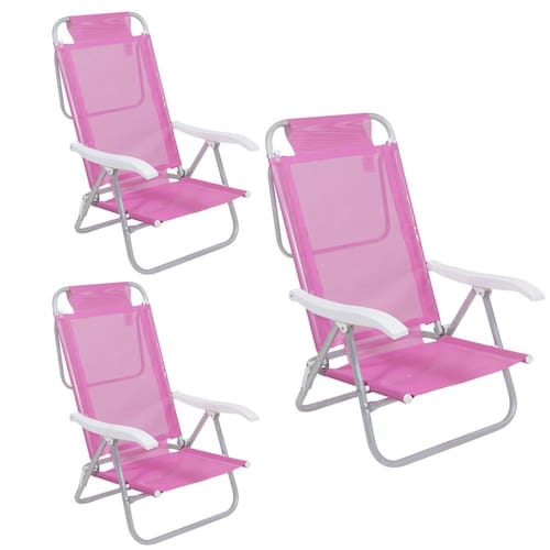 KIT 3 CADEIRA DE PRAIA RECLINÁVEL EM 6 POSIÇÕES