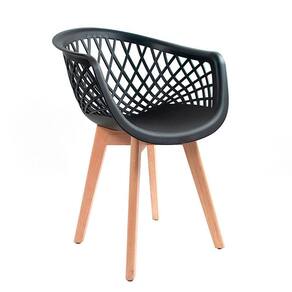 Kit 3 Poltronas Cadeiras Para Mesa De Jantar Cozinha Sala Quarto Penteadeira Escrivaninha Varanda Area Gourmet Web ;Preta Wood Base Madeira