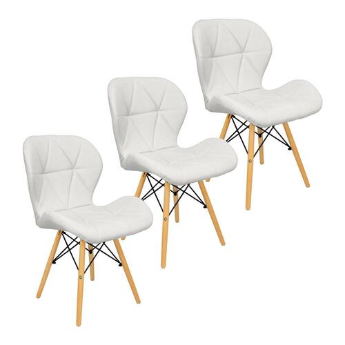 Kit 3 Cadeiras Charles Eames Eiffel Slim Wood Estofada - Branca