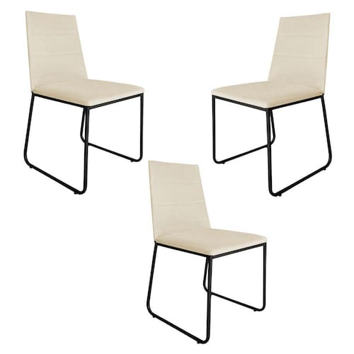 Kit 3 Cadeiras de Jantar Estofada Lille Base Preta Veludo Bege - Montanaris Decor