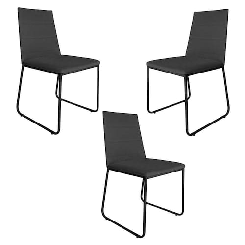 Kit 3 Cadeiras de Jantar Estofada Lille Base Preta Veludo Cinza - Montanaris Decor