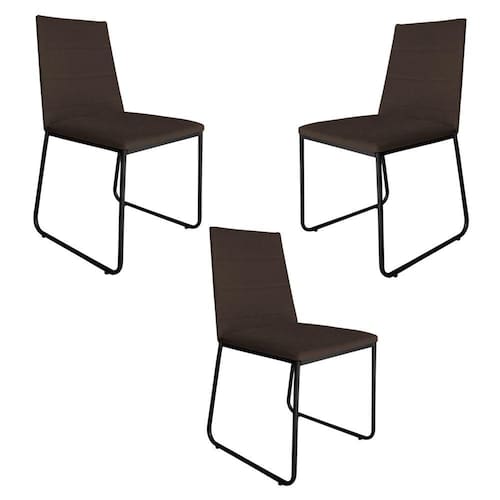 Kit 3 Cadeiras de Jantar Estofada Lille Base Preta Veludo Marrom - Montanaris Decor