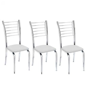 Kit 3 Cadeiras De Jantar Lara Cromada Para Cozinha Assento Corino Branco - Aurora Line Cadeira Para Cozinha Lara - Aurora Line A Cadeira Lara é a opção ideal para sua casa. Se você está procurando por uma cadeira de jantar que seja perfeita para a sua cozinha, com estilo industrial, resistente e confortável, a Cadeira Lara é a escolha certa. Seja para casas, apartamentos ou áreas gourmet, essa cadeira vai se encaixar perfeitamente no seu espaço. Com um design moderno e elegante, a Cadeira Lara combina perfeitamente com diferentes estilos de decoração. Se você gosta de um ambiente mais industrial, essa cadeira vai trazer um toque de personalidade para a sua casa. Além disso, ela também é versátil o suficiente para se adaptar a outros estilos, como o contemporâneo ou o rústico.Além do design, a Cadeira Lara também se destaca pela sua resistência. Feita com materiais de alta qualidade, ela é capaz de suportar o uso diário sem perder a sua durabilidade. Se você tem uma família grande ou adora receber amigos para jantar, essa cadeira é perfeita para você. Ela vai garantir conforto e segurança para todos.Outro ponto importante da Cadeira Lara é o seu conforto. Com um assento acolchoado e encosto ergonômico, essa cadeira proporciona uma experiência agradável durante as refeições. Você vai poder desfrutar de momentos de descontração e prazer à mesa, seja para um jantar em família ou um encontro com amigos.