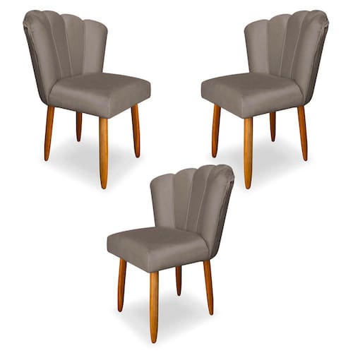 Kit 3 Cadeiras de Jantar Pétala Estofada Pés Palito Veludo Cappuccino - Montanaris Decor - Marrom