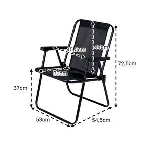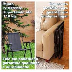 Dobrável e fácil de carregar, a Cadeira Alta Preta é prática e confortável, ideal para salas de estar, varandas, parques e campings. Muito resistente, suportando até 110 kg, tem estrutura em tubos de aço com pintura epóxi a pó preta. Com visual moderno, tem a tela em polietileno, também na cor preta. Já os apoios para os braços são em plástico polipropileno.Para guardá-la, basta dobrar. Não ocupa muito espaço, podendo ser colocada em cantos e lugares estreitos. Versátil e funcional, é um charme na decoração.