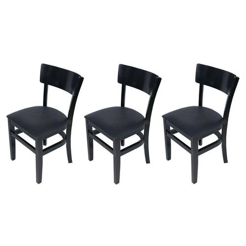 Kit 3 Cadeiras Fixas Paris Pretas Em Madeira Maciça Estofadas Pretas Para área Gourmet - Cor: Preto