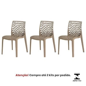 Kit 3 Cadeiras Gruvyer Nude Sala Cozinha Jantar Modelo: Cadeira Gruvyer Nude Assento: Polipropileno Base: Polipropileno Profundidade: 51 cm Largura: 42 cm Altura Total: 81 cm Altura do Chão Até o Assento: 45 cm Profundidade Interna do Assento: 43 cm Largura Interna do Assento: 42 cm Peso Máx. Recomendado: 120 kgs Peso unitário: 5 kgs