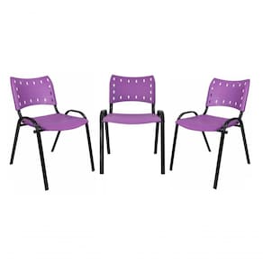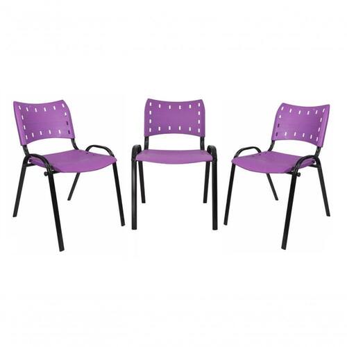 Kit 3 Cadeiras Iso Para Escola Escritório Comércio Roxo Base Preta