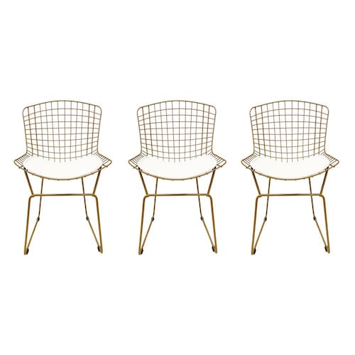 - O tradicional modelo Bertoia, está presente em nossa linha de produtos com muito requinte e sofisticação. Atentando sempre aos mínimos detalhes e produzida com todo o cuidado por nossa equipe, o conjunto de três cadeiras Bertoia será uma excepcional opção para decorar sua cozinha, sala de jantar ou área gourmet.