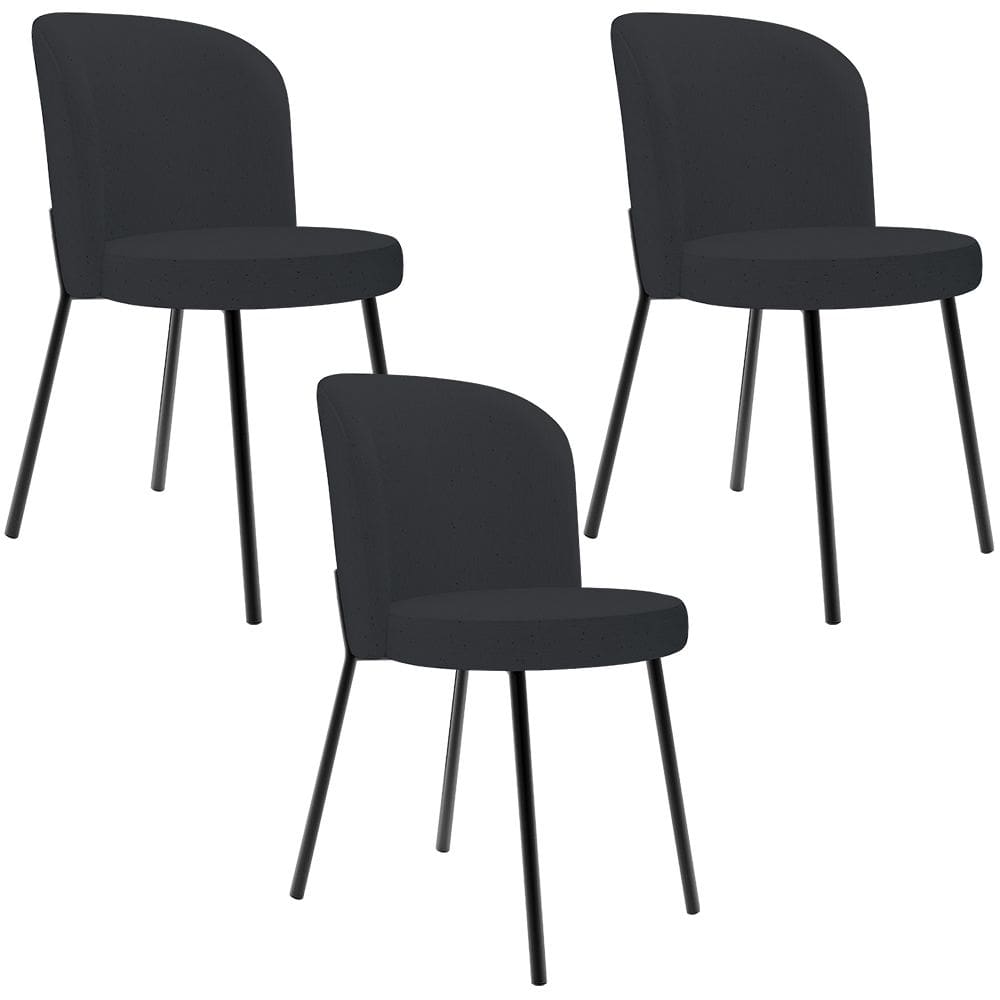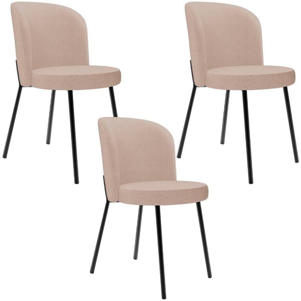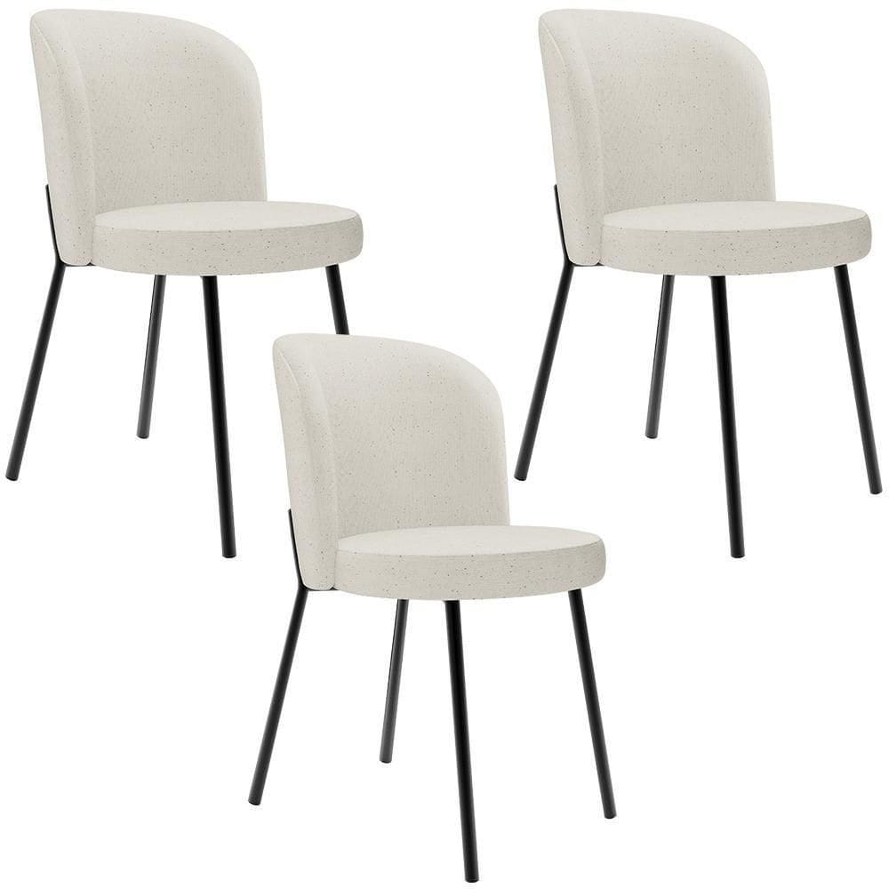 kit 3 cadeiras sala de jantar estofada gavi l02 linho