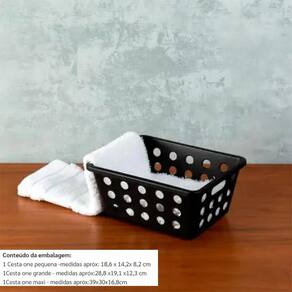 Hora de organizar Com o Kit Cestas 4 peças a bagunça tem hora marcada para acabar. Práticas para armazenar e organizar os mais diferentes objetos em qualquer ambiente, as cestas tem um design que mostra tudo o que está dentro delas, facilitando na hora de procurar o que está guardado.Sobre este itemFuros permitem visualizar o conteúdo internoMantém o ambiente organizadoCom alças nas laterais que facilitam o transporte Marca: Coza/Brinox Marca: Coza/Brinox