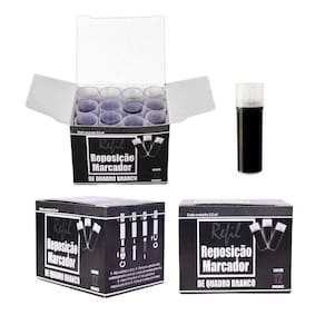 Recarga para pincel da pilot board master Marca : carinon mix Produto de excelente qualidade com material importado.Cores vivas e fortes para melhor visualização dos alunos.Qualidade garantida pela carinon mix que atua a mais de 9 anos no mercadoValor referente a 3 caixas com 12 unidades cadaNas cores:Azul - preto - vermelho + limpador para quadro brancoCaracterísticas do produto:- cartucho para recarga do marcador wbma - vbm - m - board master;- tinta especial para quadro branco;- conteúdo - 5,5 ml;- caixa com 12 unid.Qualidade e durabilidade pilotMarca das recargas: carinon mixMarca do limpador: carinon clean