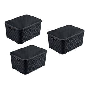 Kit 3 Caixas Organizadora Rattan 7 Litros com Tampa Preta 25588 Arqplast Kit 3 Caixas Organizadora Rattan 7 Litros com Tampa Preta