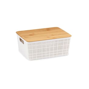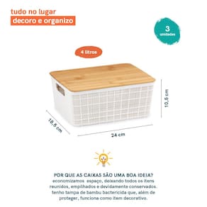 3 Unidades - CAIXA ORGANIZADORA COM TAMPA DE BAMBU 4L BRANCA - OIKOS Comprimento: 24 cm Largura: 18,5 cm Altura: 10,5 cm